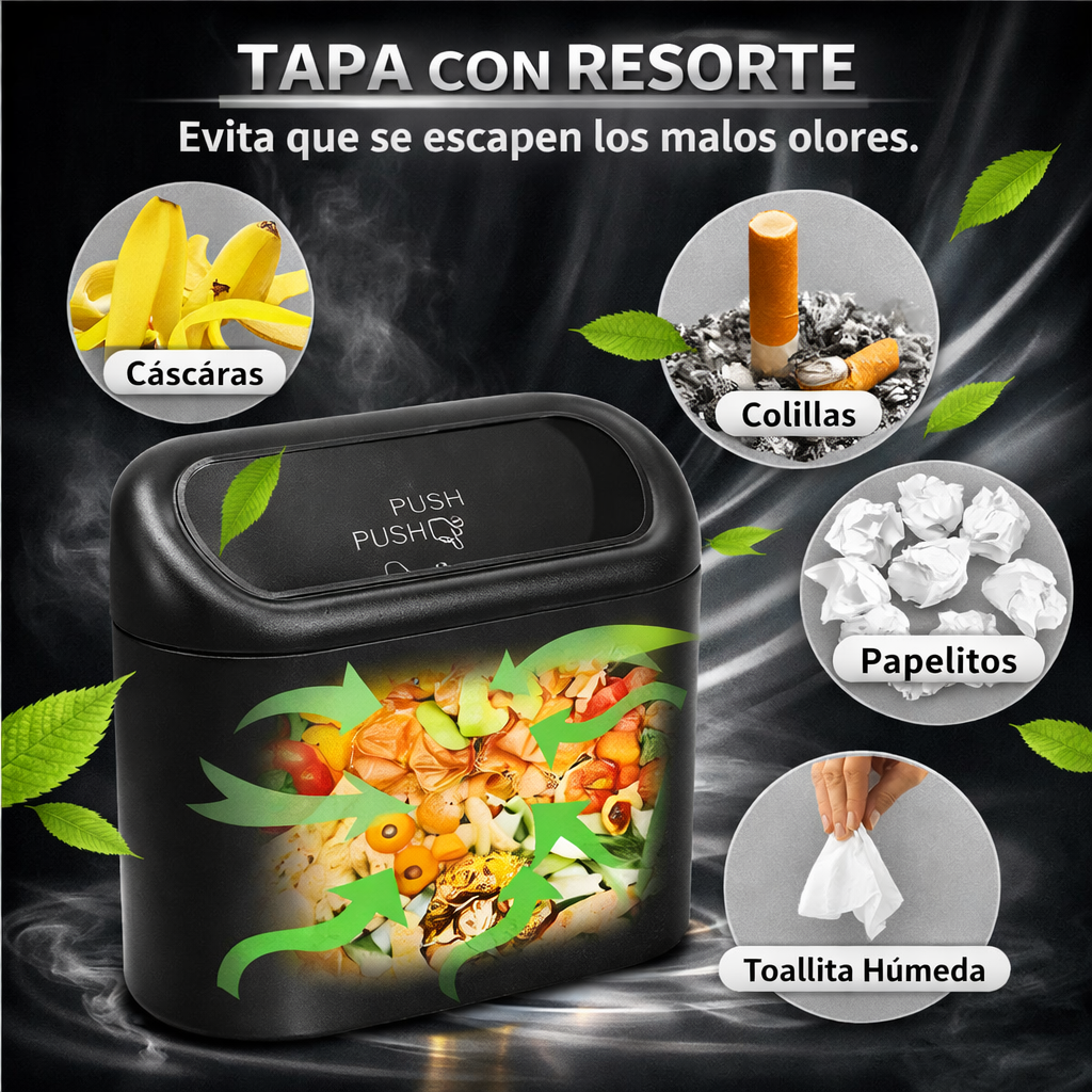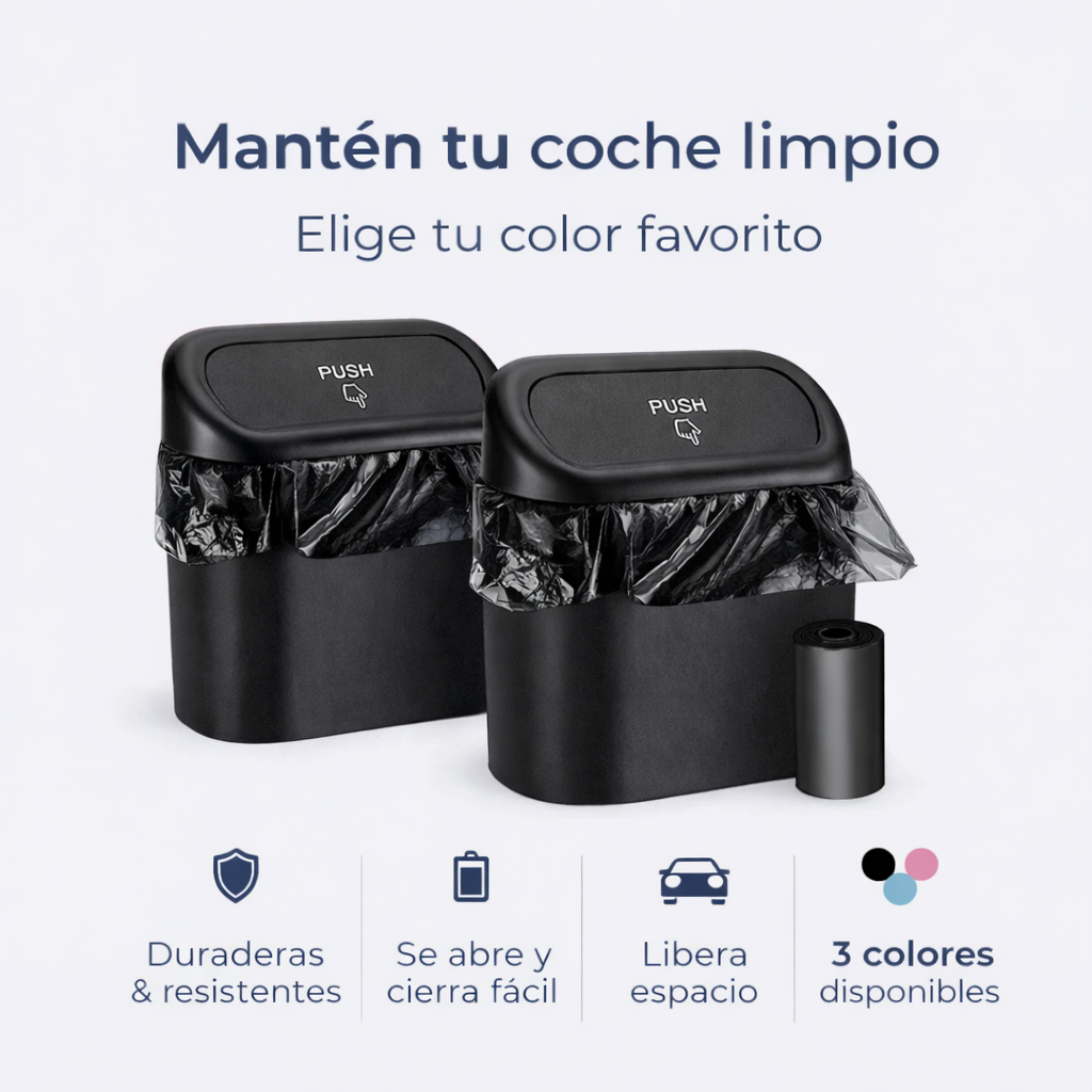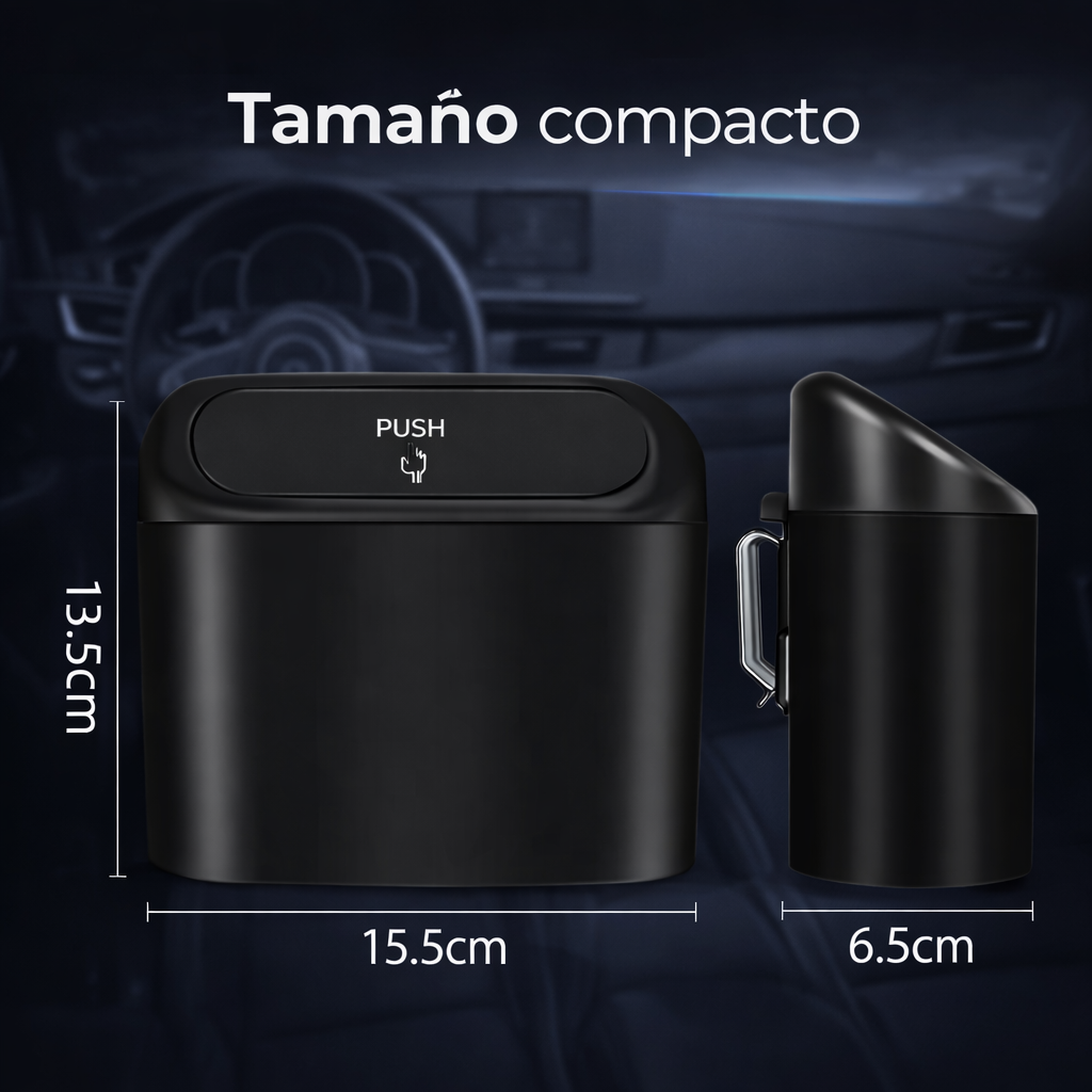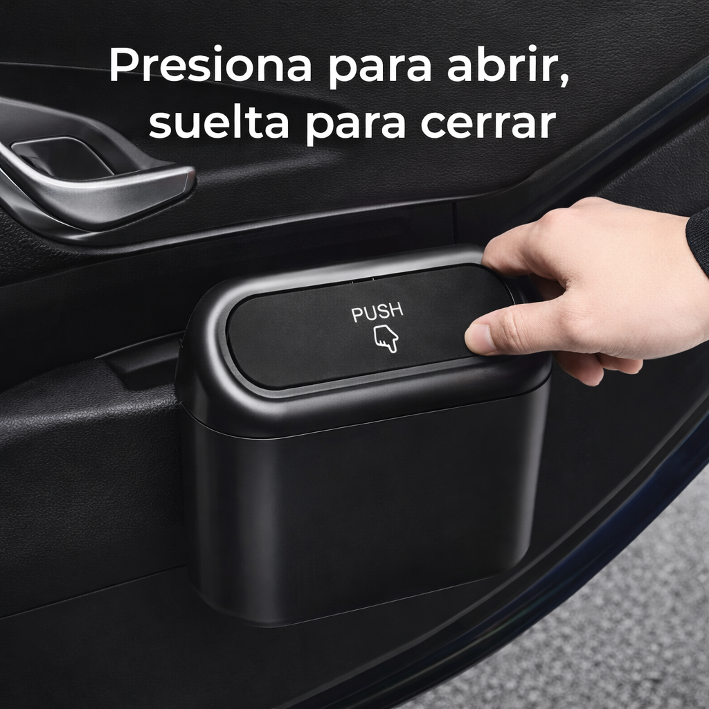 Olvídate de lidiar con alfombrillas sucias y portavasos desordenados que arruinan tu estilo. Esta papelera compacta con tapa de presión mantiene el interior impecable con un solo toque sin esfuerzo.